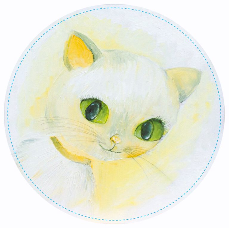 kinderkamer schilderij wit poesje groene ogen babykamer muurdecoratie kat